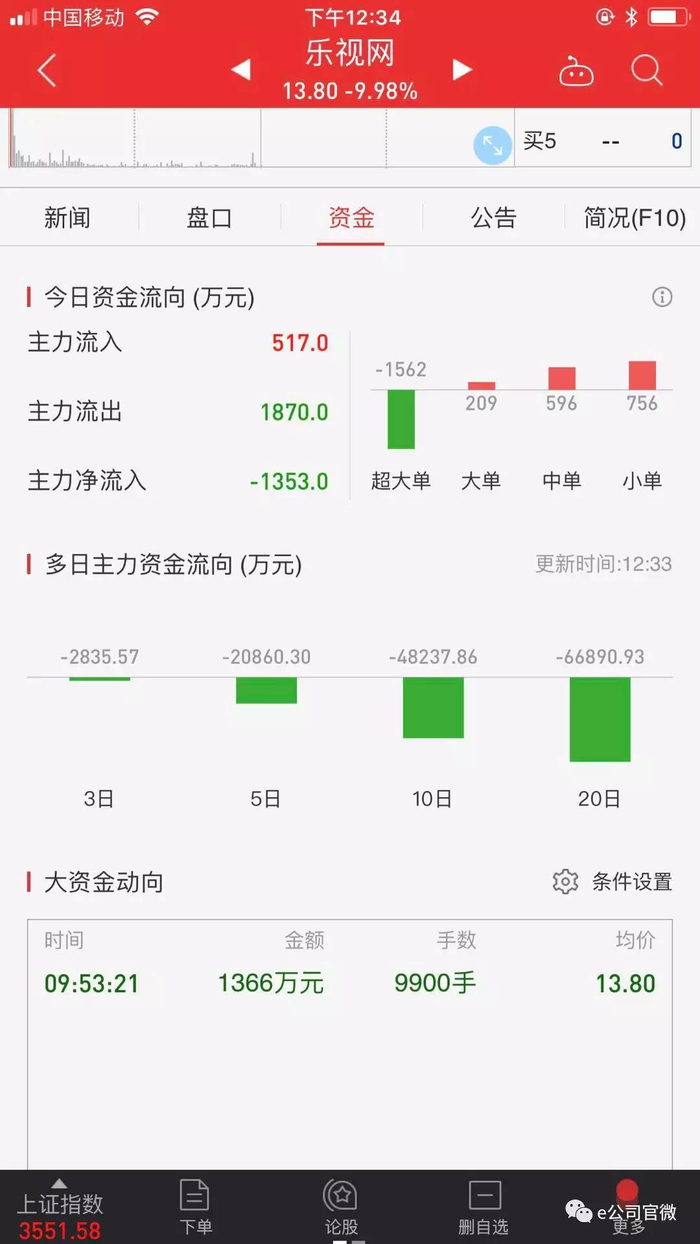 乐视850万手封单压顶竟成交千万元大单 谁在买谁在卖