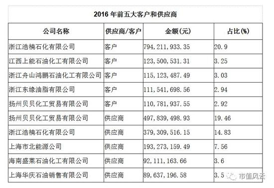 其中第一大客户“浙江浩楠石化有限公司”是莱茵体育2016年第一大客户,第二大供应商,销售金额7.9亿,占莱茵体育当年销售总额的20.9%;采购金额3.79亿,占当年采购金额的14.83%;