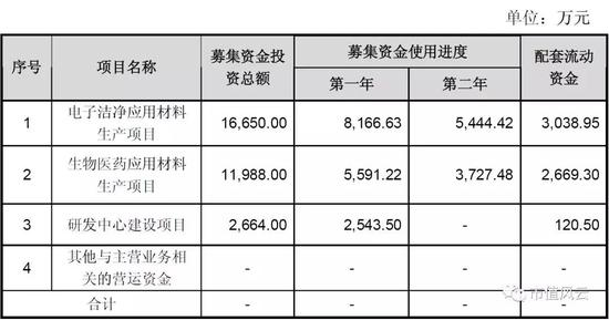 说到这儿,我们不妨顺道瞥一眼公司上市时提到的三大募投项目:电子清洁应用材料,生物医药应用材料以及研发中心建设。在招股书中,公司原计划两年内完成全部项目。