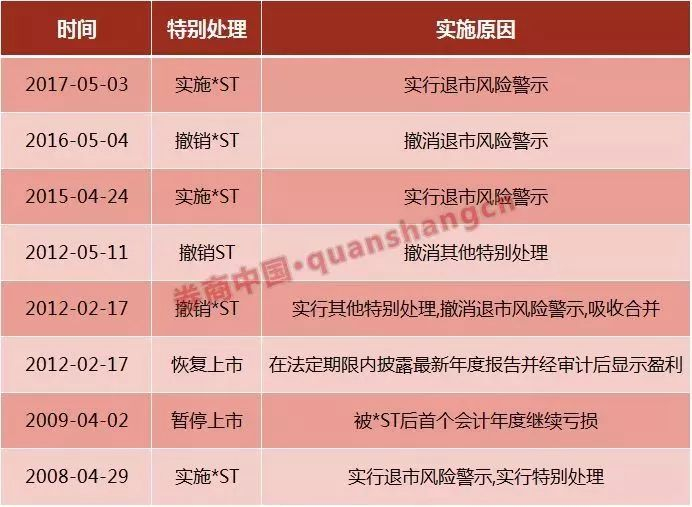 *ST首次被实施*ST是在2008年,并于2009年暂停上市,于2012年2月份恢复上市。