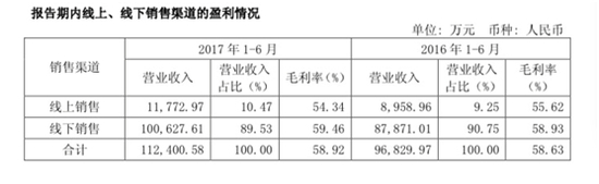 与以往我们认知不同的是,线上销售的毛利率要低于线下,与自营店的65.23%相差甚大。