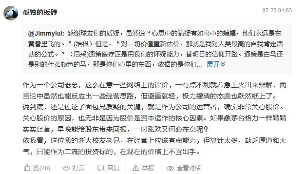通策医疗董事长吕建明在雪球上回复全文