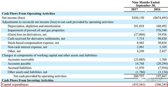再来看Carrizo Oil&Gas的情况。2017年前三季度,公司资本开支达到4.34亿美元,而2016年同期则为3.46亿美元,增幅25%。