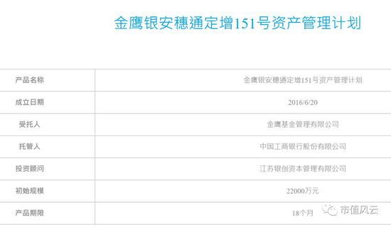 另外,以金鹰银安穗通定增151号资管计划为例,该计划的产品期限也面临到期赎回风险。