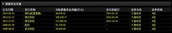 然而“铁公鸡”大唐电信在融资方面却毫不手软,回溯其资本运作史:公司曾增发3次募资超过40亿,在2000年曾配股融资超8亿,加上IPO募集的5.8亿,总共募资超54亿。按今天股价计算大唐电信的市值才不过70亿。