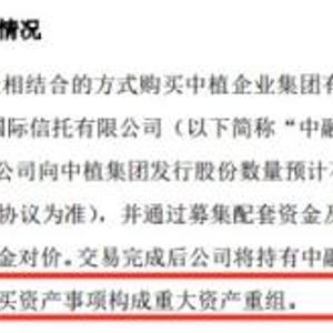 公司拟通过发行股份及支付现金相结合的方式购买中植企业集团有限公司所持中融信托约32.9864%股权。经双方初步协商,公司向中植集团发行股份数量预计不超过3亿股(具体股份数量以正式资产收购协议为准),并通过募集配套资金及其他方式向中植集团支付除股份支付外的现金对价。交易完成后公司将持有中融信托约70.4562%股权。公司本次发行股份购买资产事项构成重大资产重组。