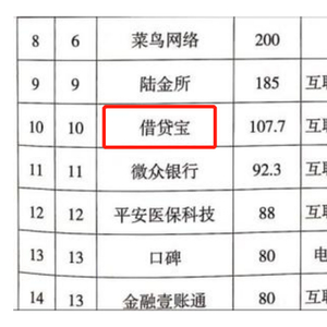 一、借贷宝以107.7亿美元估值晋级独角兽前10名
