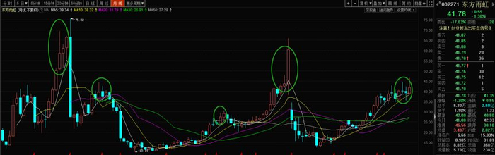 数据统计显示:高管的大额密集减持,非常“巧合”的发生在股价阶段性高位,羡煞散户。话不多说,直接上高管们五波密集精准减持位置的大概范围(月线):