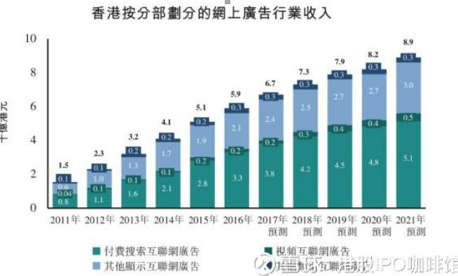 通过网络节目汇聚大量流量之后,公司广告收入也得到大幅增长。目前来看,整个线上广告行业规模正处于快速增长其期。根据益普索报告,行业规模自2011年的约15亿港元增至2016年的约59亿港元,年复合增长率约为31.5%;至2020年的复合增长率将仍然保持在10%以上。