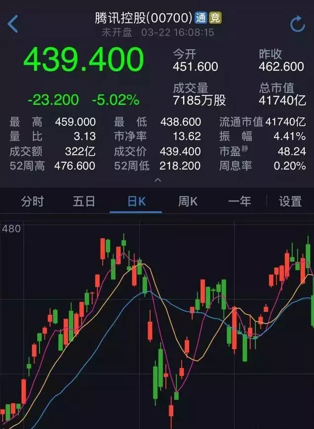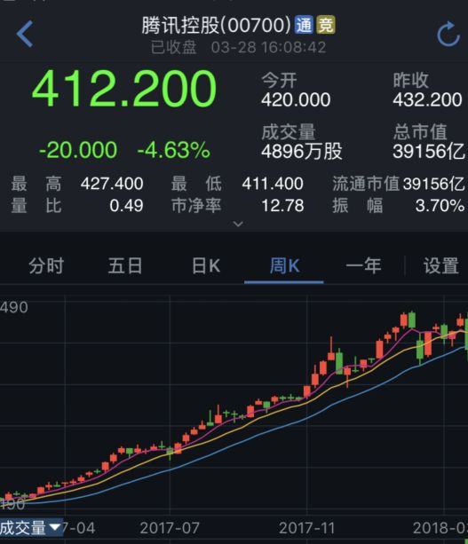 上周三腾讯控股公布2017年年度业绩,此后股价就出现急速下跌。
