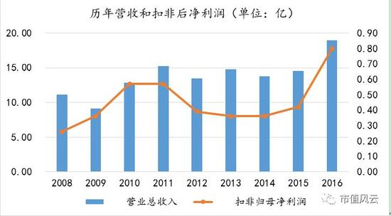 先了解实际的经营数据:从历年营收和扣非后净利润来看,上市前几年无亮点,平平淡淡,而2016年业绩突升,靠的也是并购,且是近些年来算得上唯一一次成功并贡献了不错业绩的并购:购买俄罗斯联合新型材料有限公司51%股权。