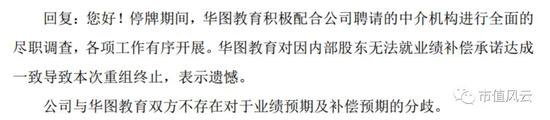 这个业绩补偿是怎么回事呢?从投资者说明会里可以一探究竟,华图教育内部股东无法达成一致,可能数给的太大了吧。