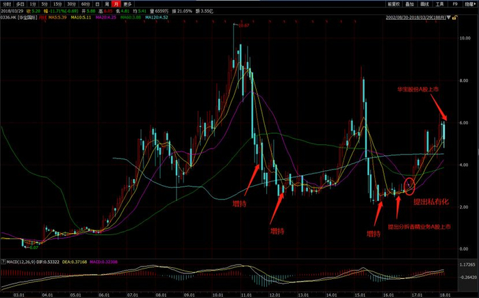 2006年初,华宝国际股价开始进入上升通道,至2010年底,5年之间,其股价上涨了10倍,总市值由2006年初的2.97亿港元飙升至2010年底的396.22亿港元。
