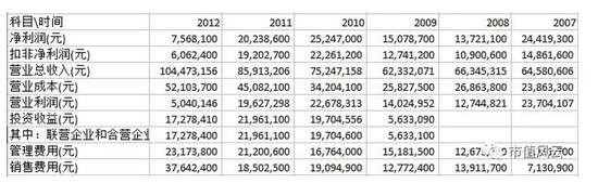 但是我们仔细看一下利润表就能发现,嘉应制药2007年-2011年5年时间里虽然业绩平稳,但是构成却有很大变化。其中最大的不同就是“投资收益”这一项。