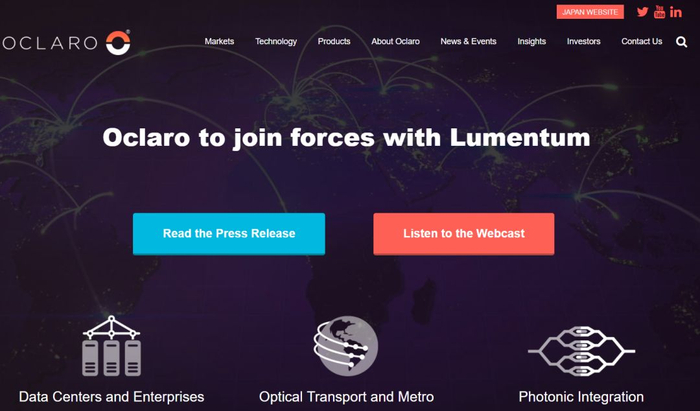 ▲截自Oclaro Inc.官网