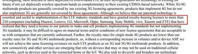 高通在其年报中也指出,公司已为超过210家公司颁发了付费许可证,这些公司中除了中兴通讯外,还包括华为、联想、LG、微软、OPPO、三星等公司。