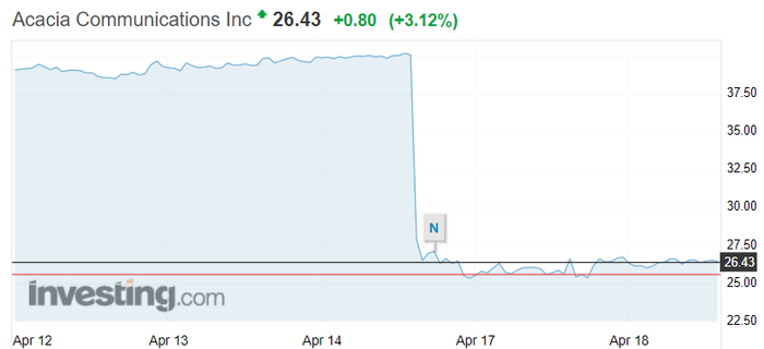 路透社的报道中称,ACIA是中兴通讯的一家独家供应商,受美商务部发布的中兴通讯出口禁令影响,ACIA在美股本周一收盘暴跌35.97%,市值在一个交易日内蒸发5.74亿美元;截至本周二收盘,其股价翻涨3.12%。