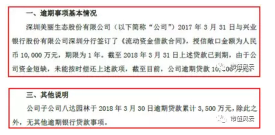 而三天后,美丽生态再次发布《关于公司银行贷款逾期及部分资产被冻结的公告》,这次逾期贷款变为4.3亿元:
