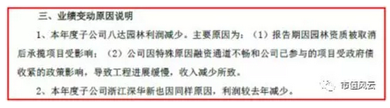 其后美丽生态在回复关注函的公告中说明变动原因主要是第四季度计提资产减值损失7500万元(主要是相关的工程绿化项目)所致。