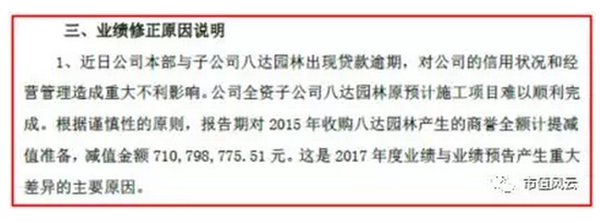 当年,美丽生态确认了1.15亿元的商誉减值。