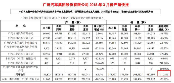 还是以广汽集团为例,集团旗下主要投资企业今年1月汽车累计销量为21.02万辆,同比增速为25.11%,但到了3月末,前3个月累计销量为50.84万辆,累计同比增速仅为11.21%。作为集团旗下产销大户之一的广汽丰田汽车有限公司,前3月累计销量甚至同比出现下滑。