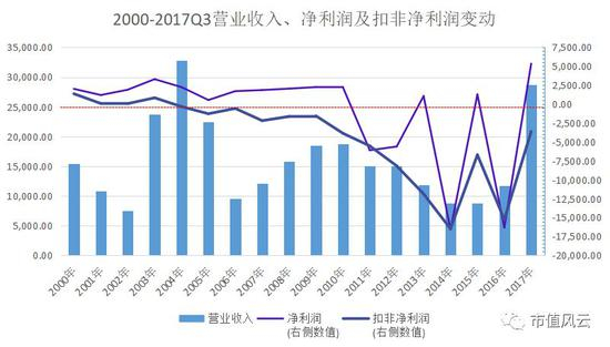 2000-2017年营业收入、净利润及扣非净利润变动如下图: