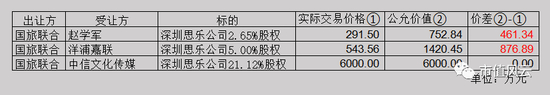 如果说与中信文化传媒集团的交易是基于公允价值,那么,深圳思乐公司1%的股权对应的公允价值应该是284.09万元。