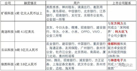 其中第一类公司多为未上市的公司,以旷世科技、商汤科技、云从科技和依图科技为代表,这些公司有着优秀的学术背景,以人工智能算法为看家本领。