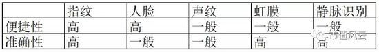 比如同在生物识别技术的范围内,指纹识别技术因为较高的便捷性和安全性率先获得了应用。虹膜识别和静脉识别技术虽然安全性高,但是验证方式较为复杂。