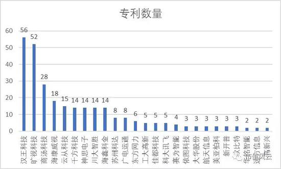 在以上这些上市公司中,又有哪些是光说不练的嘴把式呢? 风云君决定用人脸识别技术发明专利的数量来说话。