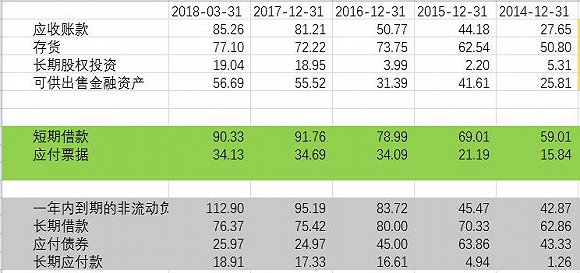 一季报显示,带息负债为359亿元,其中短期带息负债为237亿,应付债券为25亿。2017年流动资产共计330亿元还无法覆盖上述负债。2017年和2016年光支付的利息就有21亿和19亿。短期债务压力让理财产品支出也从39亿降至3.8亿。