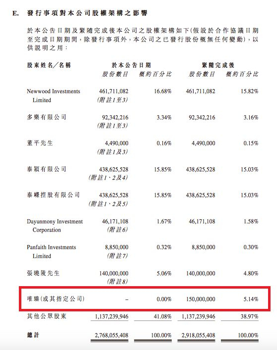 ▲唯臻(或其指定公司)占股欢喜传媒5.14%(图/欢喜传媒相关公告)