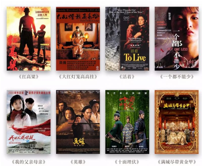 ▲张艺谋经典影视作品(图/欢喜传媒官微欢喜首映截图)