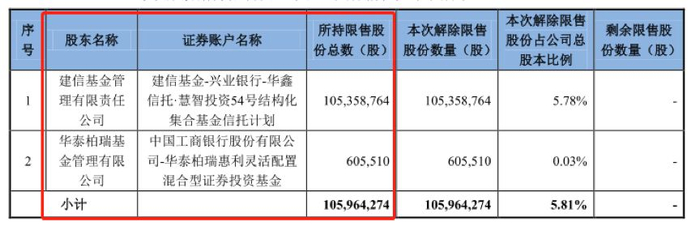 根据公开数据整理,在以上股份解除限售后,建信基金进行了部分减持,但大部分股票仍然还留在手里。