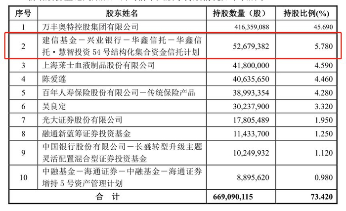 建信基金在参与定增后一跃成为万丰奥威的第二大股东,持股总数占到总股本的5.78%。