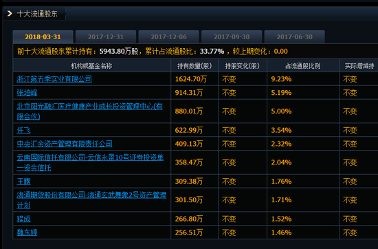 从公司十大流通股东来看,中央汇金、云南信托、海通期货等多家机构旗下产品“入坑”,有据可查的是,“海通期货股份有限公司-海通玄武舞象2号资产管理计划”,其在去年第二季度进入该股十大流通股东,粗算当季股价均值在26.90元,持有301.50万股,按照当前股价15.35元来看,浮亏3482.3万元。