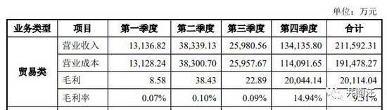 *ST烯碳的金条交易被列入贸易类业务。下图显示贸易类业务在17年四季度营收与毛利有了惊人的增长。