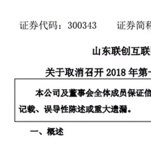 5月28日,联创互联公告取消召开2018年第一次临时股东大会,公司原股东大会通知议案内容不符合《上市公司股东大会规则(2016年修订)》的规定。