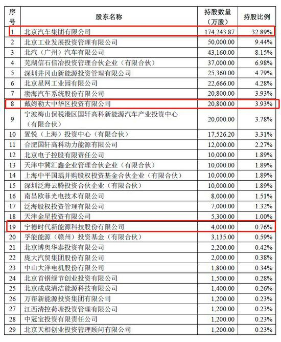 从北汽新能源的股东名单来看,不仅有控股股东北汽集团,还有戴姆勒大中华投资公司(奔驰系公司),马上A股上市有望成为创业板“新一哥”的独角兽宁德时代,以及互联网巨头360,也是刚完成借壳上市的。