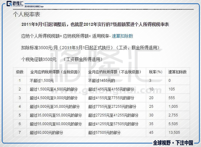 按“工资薪金所得”税目,适用3%~45%的七级超额累进税率。