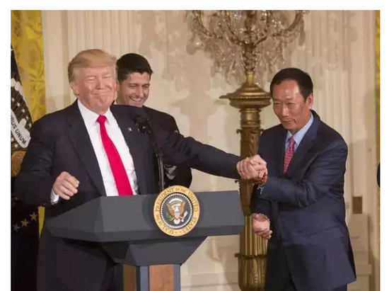 郭台铭跟特朗普的关系似乎也不错。他响应了后者在美国建厂创造工作岗位的呼应——2017年7月,富士康宣布投资100亿美元在威斯康星州建厂,由此带来的岗位多达130000个,工厂将主要生产LCD 显示屏。