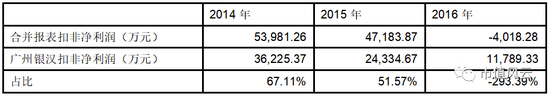 根据华谊兄弟历年年报,广州银汉自收购以来对华谊兄弟合并报表净利润贡献率每年均超过10%,风云君进一步测算广州银汉2014年-2016年扣非净利润对合并报表扣非净利润贡献率如下表所示: