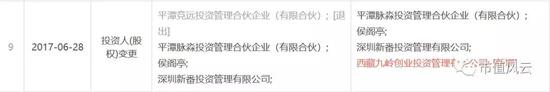注:平潭润岭的法人代表就是西藏九岭,另外2018年一季报披露的出资份额6亿,比2017年年报披露的少了1个亿。