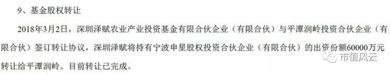 平潭沣石1号投资管理合伙企业(有限合伙)(以下简称“沣石1号”)自身也是做投资的,雏鹰农牧16年投资6000万,17年下半年追加投资6000万,共计投资1.2亿,2017年底出售,2018年1月4日完成股权变更,接盘方是平潭瀚岭投资合伙企业(有限合伙)。