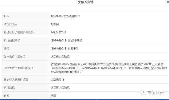 看到这里,基本可以下结论了,牛师兄就是一家名副其实的“老赖”公司,这样的老赖,雏鹰农牧竟然先后投资了1.125亿,这根本就不符合正常的商业逻辑,难道雏鹰农牧投资前不进行尽调吗?亦或是这1.125亿投资根本就是假投资?