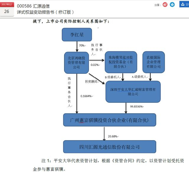 一个关键且一直被监管部门追问的问题是,究竟谁是汇源通信的实际控制人?据公开资料及回复公告,汇垠澳丰是大股东蕙富骐骥的普通合伙人,也是有限合伙人平安大华资管的投资顾问。