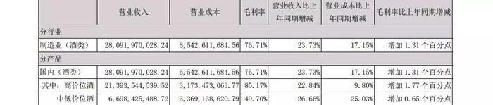 数据显示,2017年五粮液高价位酒营收约为213.94亿元,同比增长22.84%;其毛利率高达85.17%,较上年同期增长1.77个百分点。
