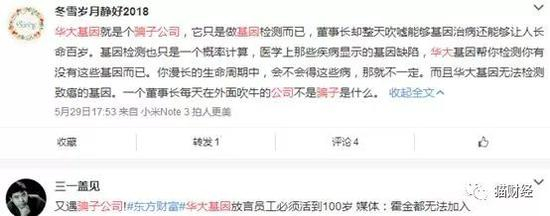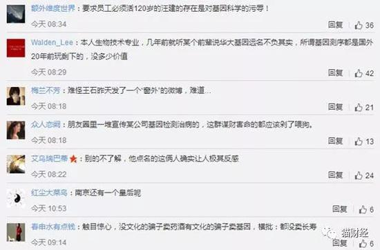 双方各执一词,吃瓜群众也坐不住了:“触目惊心,没文化的骗子公司卖药酒,有文化的骗子公司卖基因”、“要求员工必须活120岁的汪建的存在是对基因科学的污辱!”“没活到100岁,算不算KPI没完成?”
