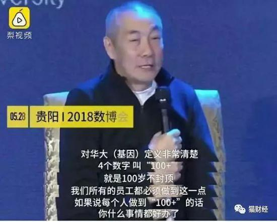 2018年5月28日,华大基因董事长汪建在2018中国国际大数据产业博览会上更是语出惊人。“我们所有员工都必须活到100岁,上不封顶!”“所有员工不允许有出生缺陷,如果有出生缺陷,说明公司‘忽悠社会,盯着别人的钱包’”。