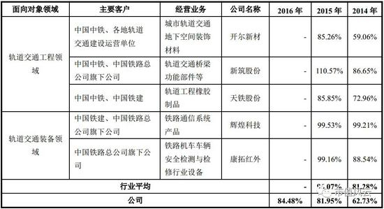 轨道交通行业都是中国中铁、中国中车、中国铁建、中国铁路、地铁等国有企业巨头,受行业业务规模、结算方式以及客户总体资金偏紧影响,以轨道交通领域为主要产品应用市场的行业内公司应收账款回款速度普遍较为缓慢,而应收账款占当期营业收入比重高为行业的普遍特征。